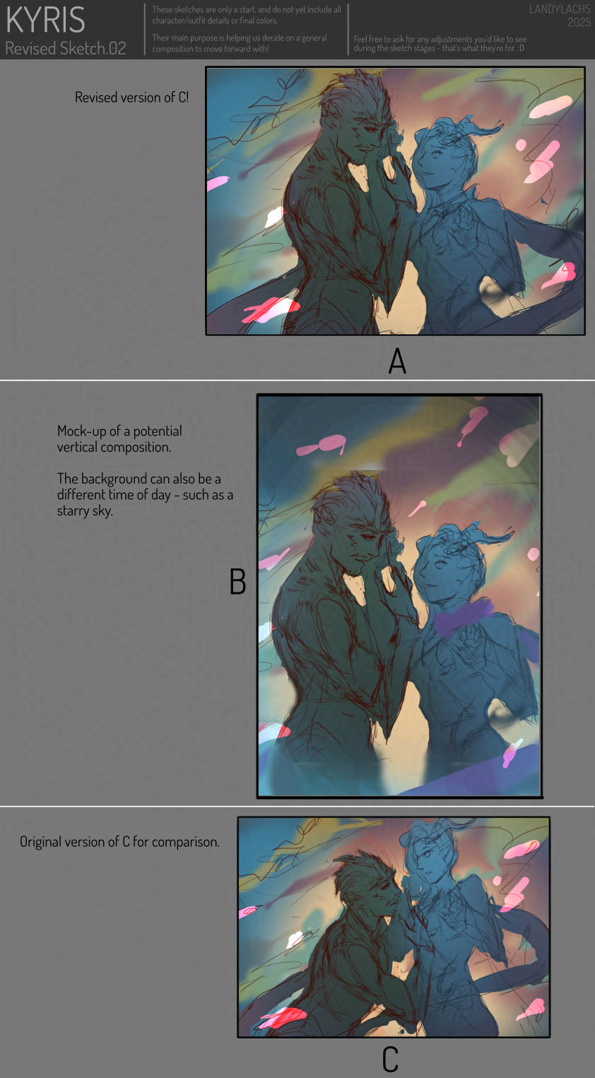 I’m not sure if I prefer the earlier version to these. I started painting over in the earlier version, and in this version, I tried tinkering with the lineart layer more. I’m leaning toward this version because the drafting has a better foundation here.