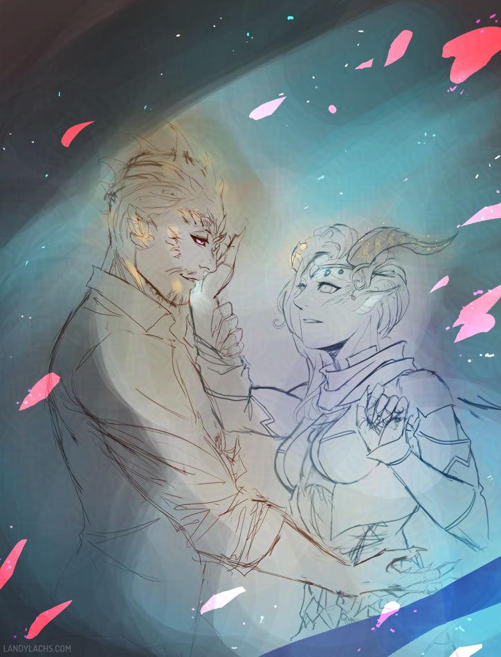 A Guild Wars 2 commission for Kyris finished earlier this month! This was an especially fun one, as Kyris asked me to try a commission in the style I’ve been drawing for The Harbinger’s Path webcomic. I’ve grown to love drawing in this style over this past year, but hadn’t thought too much about potentially doing it on commission. I’m grateful to Kyris for suggesting it, as I’m pretty pleased with how this style turned out in her drawing!