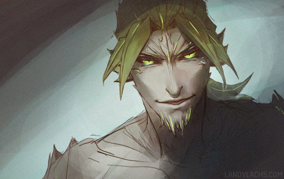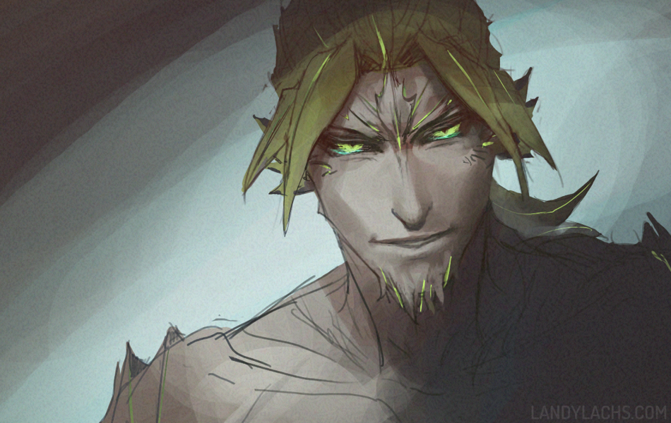 Comic panel crop of Malyck from Guild Wars 2. Portrait crop. As he smirks toward Trahearne off-camera, text reads: "....Have you wondered-" "-why I remain in this form?"