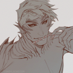 It's Trahearne licking a candy cane. Loose lineart drawing. Spurred from a conversation with Jasmine on bluesky yesterday where she said, “trahearne is back and he’s santa– 🧑‍🎄” – which gave me a variety of amusing mental images I immediately wished to draw.
