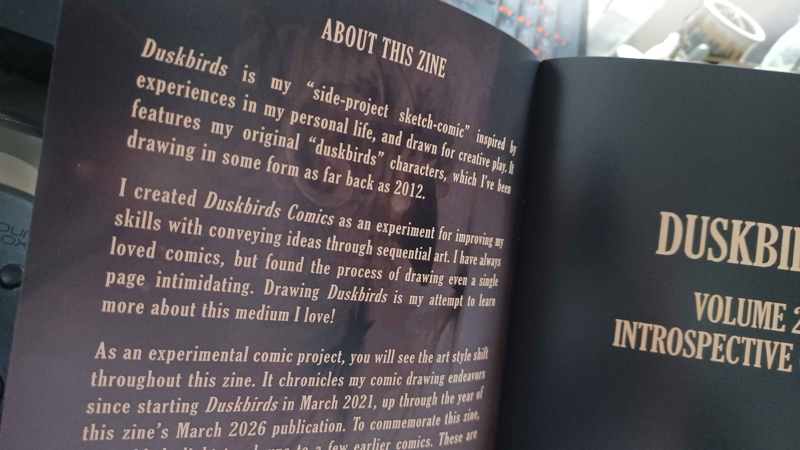 Wanted to write a quick post about the printed Duskbirds Comics zines!